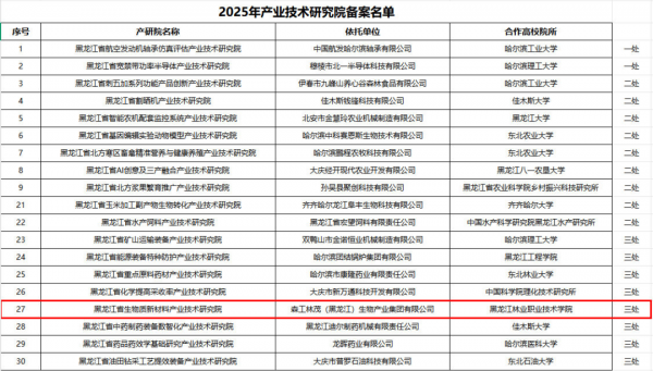 近日,黑龙江省科技厅发布《关于公布2025年新备案黑龙江省产业技术创新联盟和产业技术研究院名单的通知》,学院与龙江森工林茂(黑龙江)生物产业集团有限公司联合申报的“黑龙江省生物质新材料产业技术研究院”成功获批,实现了学院在科教融汇与产教融合协同平台建设方面的新突破。